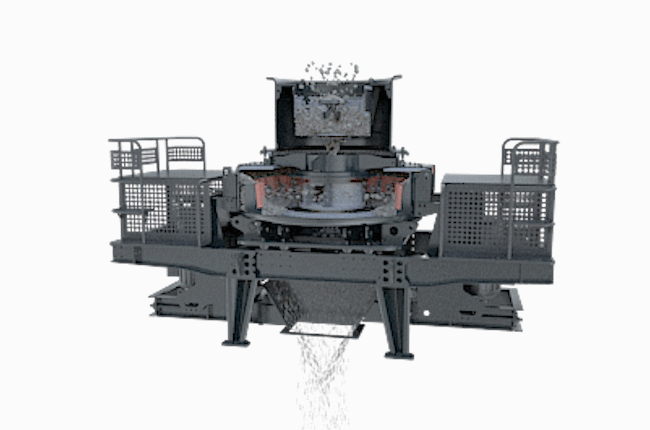 VSI制砂机运用先进的选择性破碎和解理破碎原理,直接对物料施加足够动能,并通过冲击将动能转换成克服物料所需的破碎能而破碎。物料基本沿其自然的纹理面、解理面断裂,粒形好、自身消耗低。全中心进料:物料落入进料斗,经中心进料孔进入高速旋转的甩轮,在甩轮内被迅速加速,其加速度可达数十倍重力加速度,然后高速从甩轮内射出,首先与反弹后自由下落的另一部分物料进行撞击,然后一起冲击到物料衬层(石打石)或反击块(石打铁)上,被反弹斜向上冲击到涡流腔的顶部,又改变其运动方向,偏转向下运动,又与从叶轮流道发射出来的物料撞击形成连续的物料幕。这样,一块物料在涡流破碎腔内受到两次、或更多次撞击、摩擦和研磨破碎作用。被破碎的物料由下部排料口排出。
